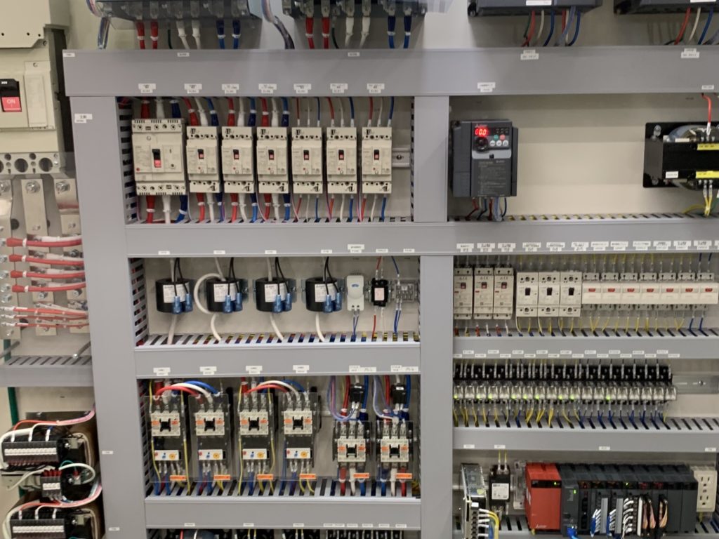 株式会社three-Tでは、単体産業機械・生産ライン・などの制御盤及び機内配線の「設計」「製作」「工事」を一貫して承ります。
